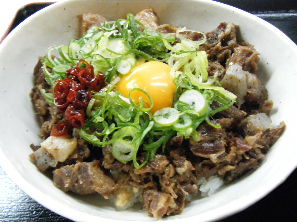 特性牛すじ煮込みが乗った他にはない丼に仕上がりました。オリジナル唐辛子をお好みでかけてお召し上がりください。
